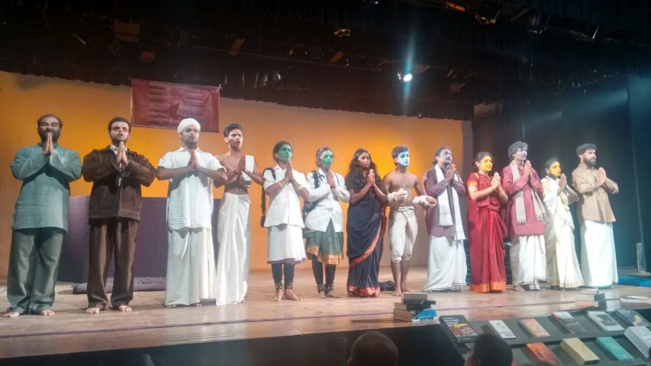 I realised, the art form I am practising is an offspring of intellectuals of the cities or urban dwellers. It grew without having any organic ties with the already existing theatre forms around them. When I speak about organic ties, I don’t mean using the outer structure of a native/traditional form but instead sharing the life of the native forms and learning from the life of actors involved in those forms. Revolutionary theatre plays were written and staged in 1950’s in Tamil Nadu. I would say playwrights and actors were the backbone of Dravidian Movement. ‘Ratha Kaneer’ (Tears of Blood), a play written by Thiruvarur Thangarasu and acted by M.R. Radha is relevant even now. I wonder in the lane of time when and where we lost this spirit. Of course the role of cinema here is very important, an angel by birth it is now a monster swallowing all the others around it. It’s primary role now is to maintain the public in a hypnotized state. Exactly opposite of what art should do, theatre should do. I will not make the mistake of labelling ‘Cinema’ as the prime suspect and close the case.